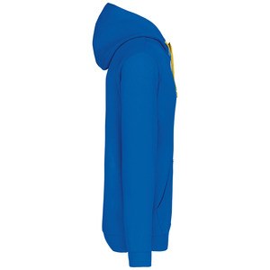 Kontrast-Kapuzenpullover aus 80% Baumwolle / 20% Polyester, gebürstetes Fleece für Wärme und Komfort. Vielseitig für Großbestellungen und Freizeit. Dieses Sweatshirt verfügt über eine kontrastfarben gefütterte Kapuze mit passendem Kordelzug für einen modernen zweifarbigen Look. Das gebürstete Fleece-Innere bietet ein weiches Tragegefühl, während Rippbündchen an Ärmeln und Saum für eine gute Passform sorgen. Ausgestattet mit einer Kängurutasche inklusive Kopfhörerzugang ist es praktisch für den Alltag. Der hohe Baumwollanteil macht es zu einer exzellenten Oberfläche für Siebdruck, Stickerei oder DTF, ideal für Corporate Branding oder Werbeartikel.