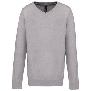 Kariban K9109 - Grau Melange - Kinder-Pullover mit V-Ausschnitt