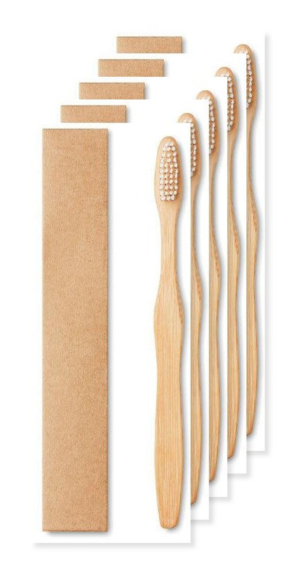 Pack mit 5 GiftRetail MO9877 - DENTOBRUSH Zahnbürste Bambus