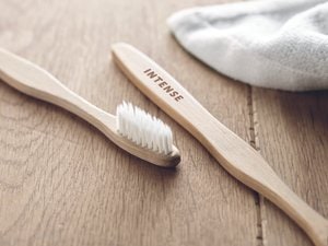 Zahnbürste mit Griffteil aus Bambus, Borsten aus Nylon.
