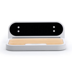 Dieses Ladegerät kombiniert die natürliche Schönheit von Bambus mit der Stärke von recyceltem ABS und bietet so eine umweltfreundliche Lösung.Zusätzlich zu seiner kabellosen 10-W-Ladefunktion verfügt dieses Ladegerät auch über eine Uhrfunktion.