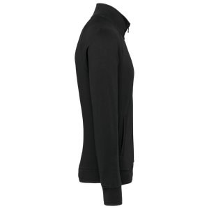 1x1 gefütterte Rippenbündchen an Ärmel- und Saumabschlüssen.