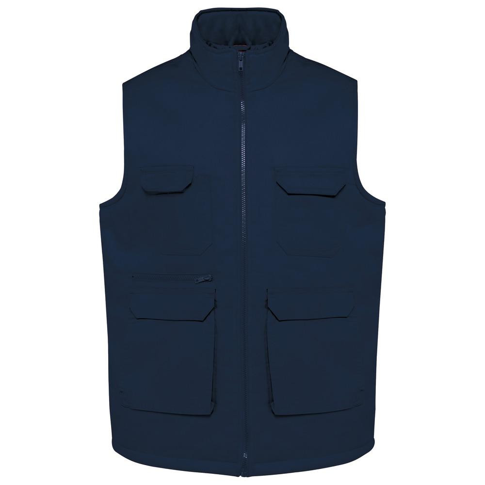 2 große aufgesetzt Taschen mit Klappe und Klettverschluss sowie seitlicher Öffnung sowie 2 aufgesetzt Brusttaschen mit Klappe und Klettverschluss, davon eine mit einem offenen Stiftfach.